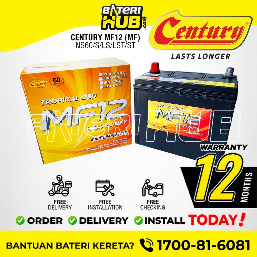 Buy 50b24l Century Mf12 Heavy Duty Ns60ls Lst Car Battery Bateri Kereta Waja Vios Civic Almera Iswara Hrv Accord Seetracker Malaysia